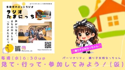 地域情報 「見て・行って・参加してみよう!(仮)」 知ってるだけじゃつまらない まちとつながるにっちな時間 (そんな時間が毎日を少し楽しくしてくれる) 多摩市や周辺地域のイベント・コミュニティ情報等を、3つの〝みよう〟からピックアップしてお届けします 【4/1の回は…】 春が来た!!行ってみよう桜まつり。市内3ヶ所の桜まつりをご紹介。 stand fm / YouTube 地域情報 踊り子女将なっちゃん stand.fm (ラジオたまにっち)